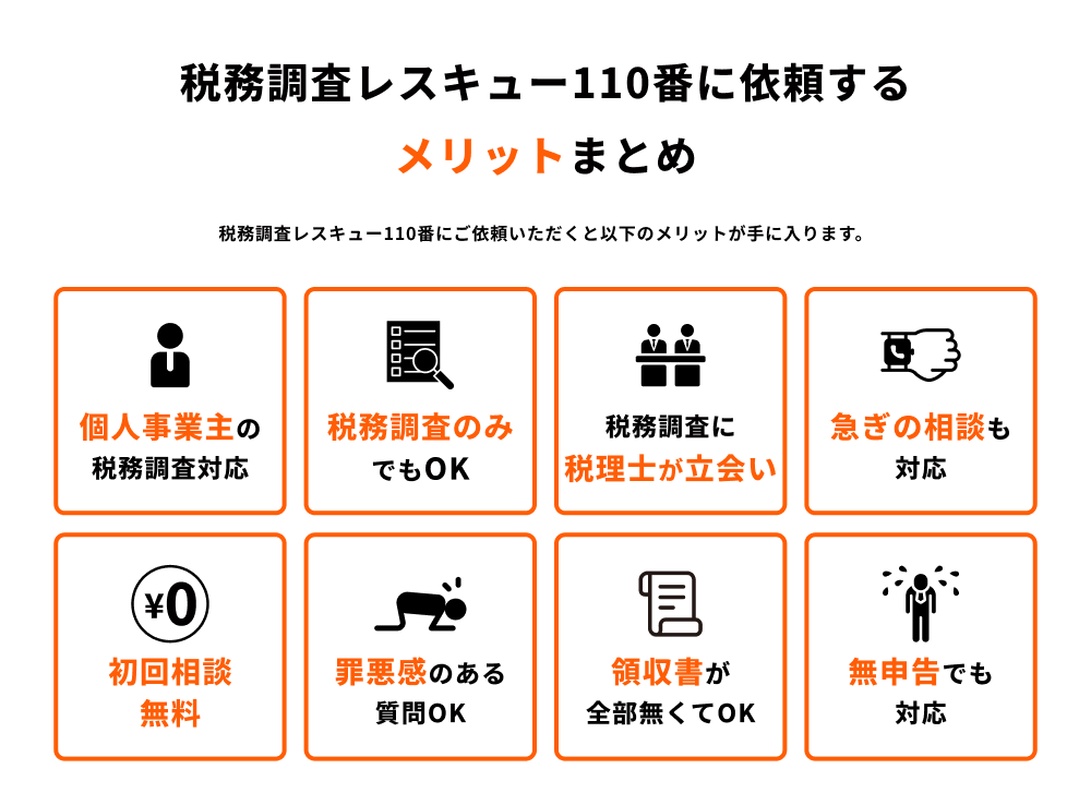 まずは一人で悩まず、税務調査レスキュー110番までご相談ください。