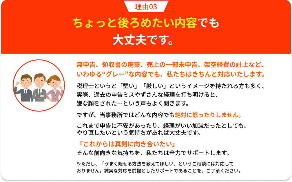 無申告や適当な経理をしていても怒りません!